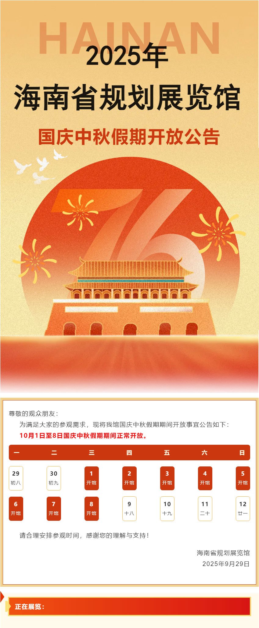 国庆、中秋期间开馆!