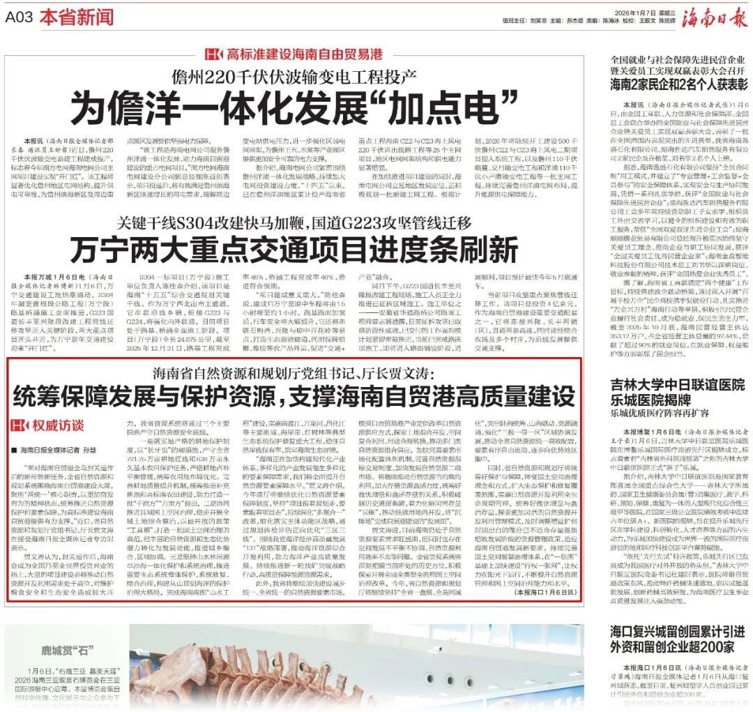 “面对海南自贸港全岛封关运作后的新形势新任务,全省自然资源和规划系统围绕海南自贸港建设大局,聚焦‘两统一’核心职责,以更加奋发有为的精神状态,统筹推进自然资源保护和要素保障,为高标准建设海南自贸港提供有力支撑。”近日,省自然资源和规划厅党组书记、厅长贾文涛在接受海南日报全媒体记者专访时表示。
