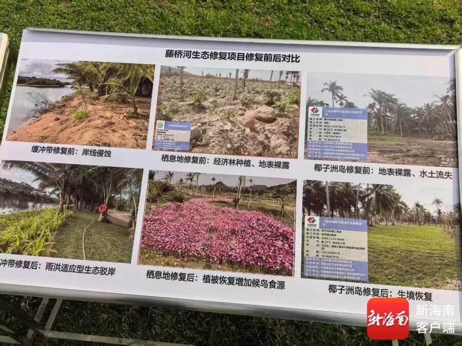 “藤桥河项目不仅是生态修复工程,更是为绿色产业发展建设的‘生态基建’。”中国地质科学院生态修复中心主任王博表示,项目将生态保护修复和地方发展紧密结合。目前,该项目的椰子洲岛区域已完成生态恢复,未来将进行适度、可持续的开发,开发收益反哺生态管护,形成良性循环。