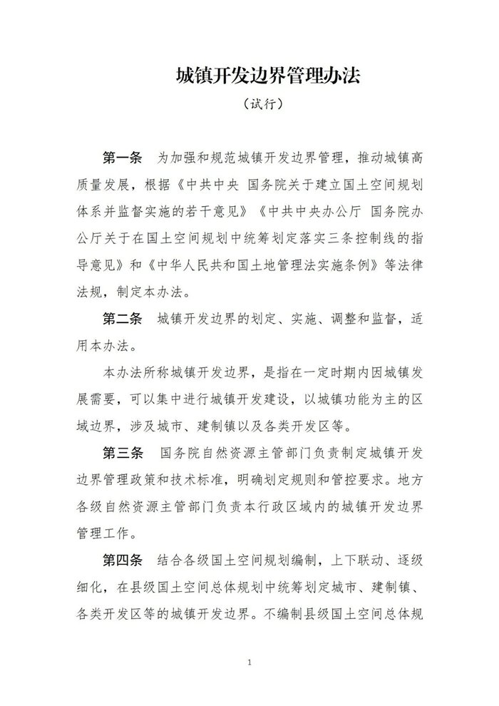 《城镇开发边界管理办法(试行)》已经部审议通过,现印发执行。